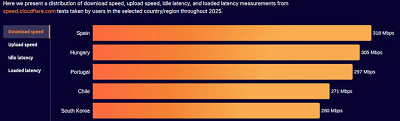 CloudflareFor most of us, the internet has gotten faster. Overall, however, Canada, the UK, and the US are not even in the top 20. You'll find the fastest internet in Spain, Hungary, Portugal, Chile, and South Korea, with average download speeds ranging from 318 to 260 Megabits per second (Mbps).