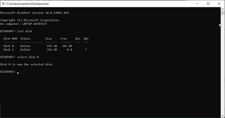 Exercise caution when using the diskpart utility. Using incorrect objects can cost you all of your data, and you may not be able to recover any of it at all. Therefore, we recommended you create a backup of your important system data before using the diskpart tool.