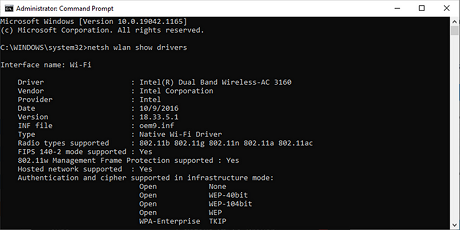 netsh wlan show drivers.
