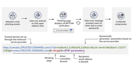 Microsoft is warning of a widespread credential phishing campaign that leverages open redirector links in email communications as a vector to trick users into visiting malicious websites while effectively bypassing security software.