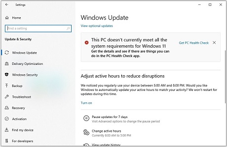 This PC doesn’t currently meet all the system requirements message