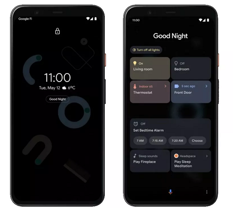 For example, pressing a “Good Night” icon on the lock screen would have pulled up info cards with smart home controls, alarms, and sleep and meditation sounds. If you were at the store, the At a Glance icon might say “At Whole Foods” and bring up your shopping list, loyalty card barcode, and Google Pay. Another screenshot shows how the feature would shape-shift at a train station to show the next arriving trains and the duration and stops to your destination. It could also pull up digital tickets you might have purchased on a transit app.