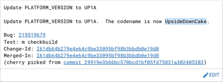 The discovery of the internal codename was made known in the code change placed on the Android Open Source