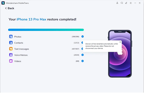 There are apps that require your destination device to be a brand new device without setting up. If this is the circumstance, you will be forced to erase data on it permanently. This is not the case with MobileTrans.