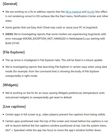 Windows 11 Insider Preview Build 25151 for the Dev Channel also has some known issues, which you should check before installing the latest build. The known issues are given below.