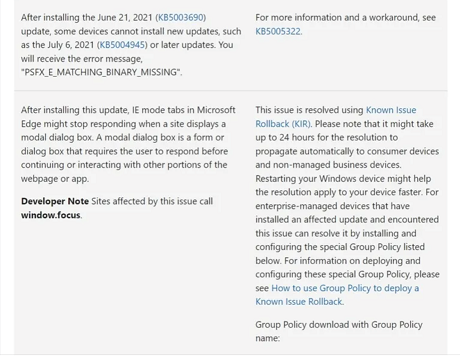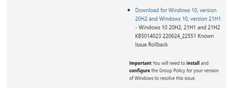 Windows 10 KB5015878 also includes several known issues, but Microsoft has also posted the workarounds so that you can fix those issues on your own. You can check those below.