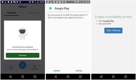 While the app itself does not initially contain any malicious code, once installed and launched, it will download the malware via a fake program update.