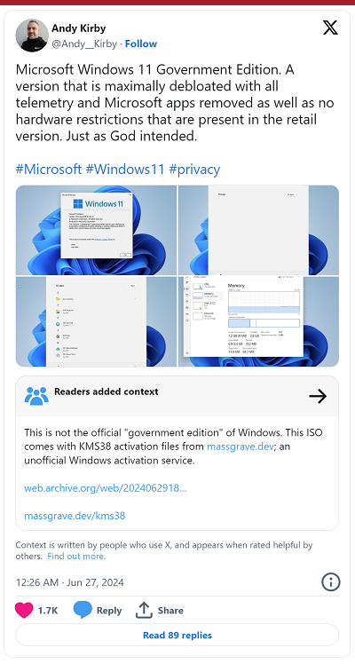 Why the alleged “Government Edition” of Windows 11 is dangerousAgain for emphasis: