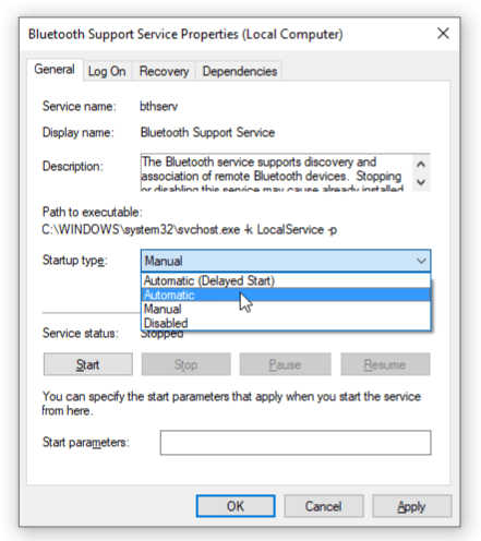 Bluetooth Support Service” and select “