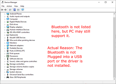 3. As previously mentioned, your PC can still support Bluetooth and not show it in Device Manager. In that case, you need to install the appropriate driver.