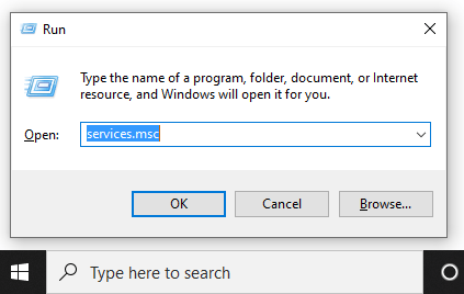 services.msc” without quotes in the command box, and then press “