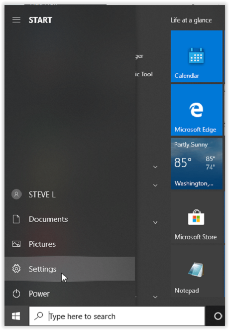 Start Menu” icon, and then select “