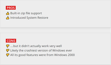 Perhaps the gravest sin ME committed was limiting user access to DOS despite being the final Windows operating system built on top of DOS. It ended a groundbreaking era of Windows with a whimper, but XP came in with a bang just barely a year later.