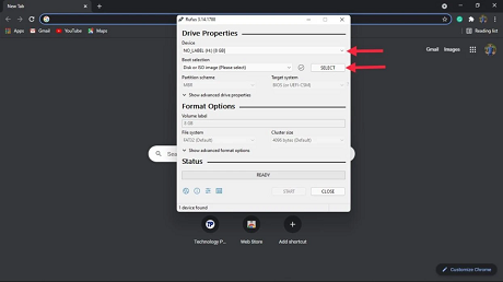 2. After opening rufus, connect your USB drive to your PC. Please note- All the data on the USB drive