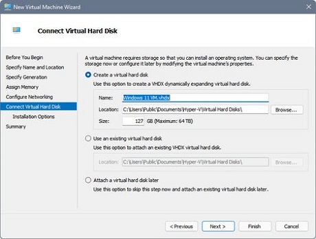 safely leave its size at 127 GB. Hyper-V creates a dynamically expanding virtual hard disk that uses