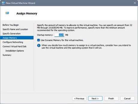 The default Dynamic Memory option keeps RAM usage to a minimum, expanding as needed