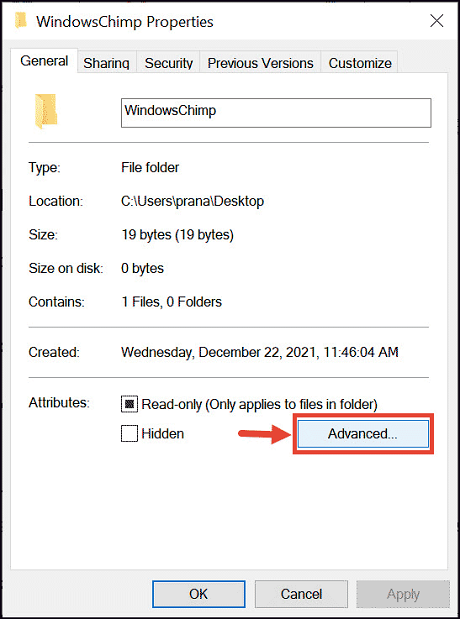 3. In the Properties window, navigate to Advanced.
