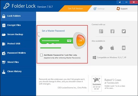 1. Launch Folder Lock and set your Master Password