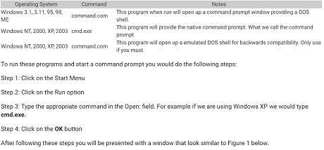 Using the Command Prompt or Dos Window