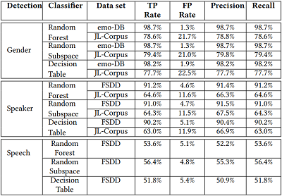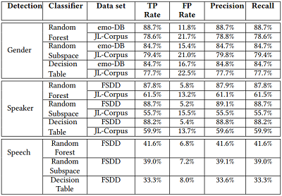 A machine learning (ML) algorithm was trained using readily available datasets to recognize speech content, caller identity, and gender.