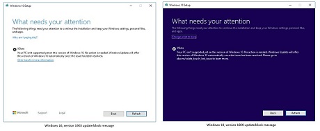 "To safeguard your update experience, we have applied a compatibility hold on these devices from installing or being offered Windows 10, version 1903 or Windows 10, version 1809," says Microsoft.