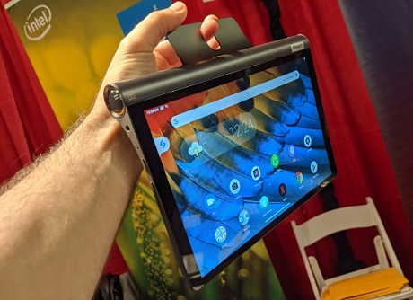 Design-wise, the tablet looks familiar… because it’s virtually identical to the Lenovo Yoga Tab 3 line of tablets launched in 2015.