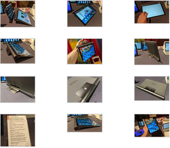 The tablet has a 7,000 mAh battery and the Yoga Smart Tab measures 9.5″ x 6.5″ x 0.9″ at its thickest spot and 0.3″ at its thinnest. The tablet weighs just under 1.3 pounds.