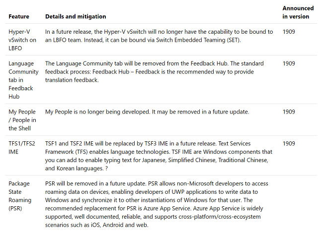 Microsoft has released a list of features and functionalities removed from Windows 10 v1909. If you want to find out what’s going away or features or functionalities removed in Windows 10 v1909, check out the list below.