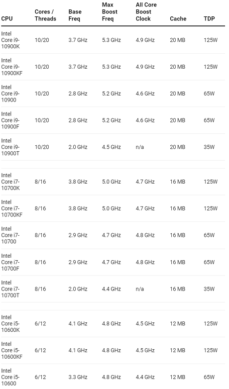such as the Core i9-9900K above, but with its 10th Gen CPUs, this could changeBelow you can see CPUs such as the Core i7-10700K and Core i5-10600K. Their equivalents - the Core i7-9700K and Core i5-9600K have eight cores and six cores respectively. However, they lack Hyper-Threading so they only have eight and six threads accordingly. With its 10th Gen CPUs, though, Intel is adding Hyper-Threading to these as well as other CPUs. In short, the Core i7-10700K becomes what the Core i9-9900K is now - an eight-core, 16-thread CPU.