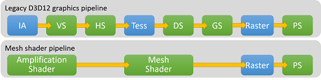Mesh shaders can also optionally be used with amplification shaders. I won’t go into those too much, but the basic principle here is to help set up data for the mesh shaders. Microsoft notes that they’re particularly useful for culling, though that isn’t their only use.