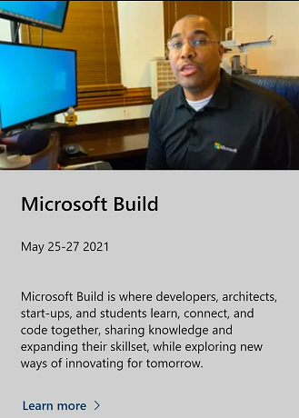 A page referencing Build 2021 has now gone up, announcing the date of the event from the 25th to 27th May 2021.