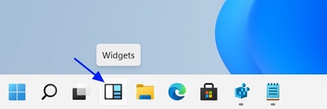 Windows 11 has renamed the Windows 10 News and Interests feature into 'Widgets' and displays it as an icon on the taskbar, as shown below.