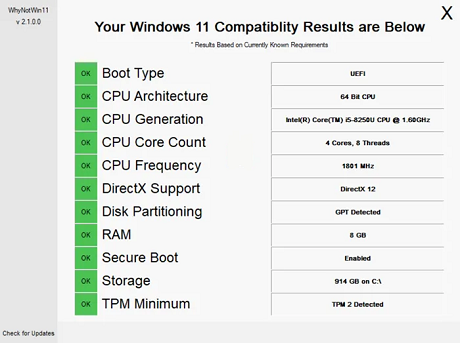 WhyNotWin11 system requirements and compatibility checker tool will scan your hardware and tell WHY your PC is not compatible with Windows 11. Now most computers capable of running the latest version of Windows 10 are also likely to be compatible with Windows 11.