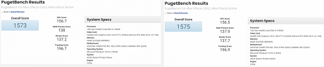 The processor scored 1541, 1573, and 1575 overall points in the PugetBench benchmark for Adobe After Effects, which is a GPU benchmark. Thus, it is not exactly a result that should be used to compare CPUs, yet those are the only results that were discovered yet.