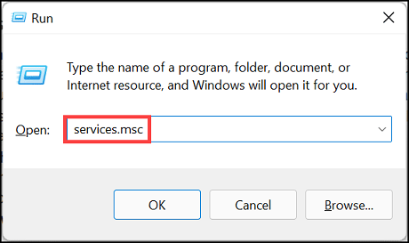 services.msc and hit the enter key.