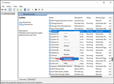 SysMain’ and select the ‘