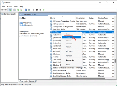 Disable the SysMainSysMain, formerly known as Superfetch, is a service that runs in the background in Windows systems and quietly analyzes the RAM and applications that your system uses most.