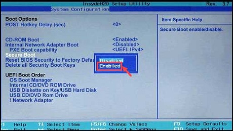 4. Find the Secure Boot setting, and if it is disabled, set it to enabled. The Secure Boot setting can also be found under the