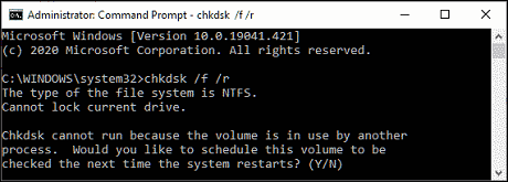 chkdsk /f C: and hit the enter key