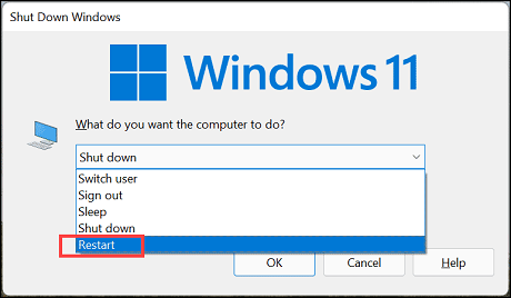 Restart from the drop-down menu of the