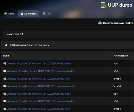 • Visit UUP Dump Website’s dedicated Windows 11 section. It allows users to download the full ISO