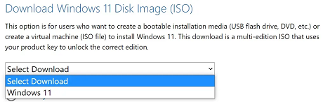 • Head over to the section “Download Windows 11 Disk Image (ISO)”
