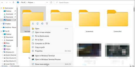 However, the classic context menu is still part of Windows 11. To access it, right-click in File Explorer and select the Show more options to open a spill-over menu. You can also use the Shift + F10 keyboard shortcut to access this option.