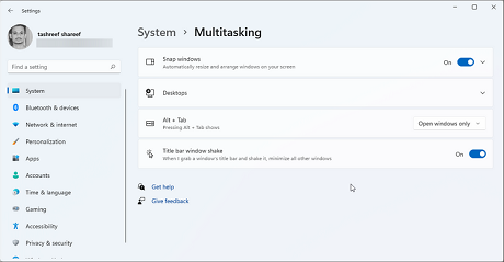 Windows 11 has another cool trick up its sleeves called "title bar window shake." When enabled, it allows you to minimize all the open windows except for your active window with a shake.