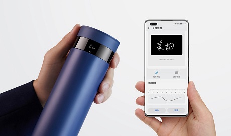 The smart water bottle also has a customizable touchscreen display. As one photo implies, the bottle can display your name. In other photos, Huawei shows that you can track the bottle's internal temperature and its remaining capacity. For reference, the bottle can be up inaccurate by up to 8%.
