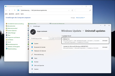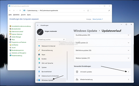 Here Microsoft has removed the redirection under Windows Update -> Update history -> Under "Additional options", the entry "Uninstall updates" and the updates are now listed in the settings. The OptionalFeatures.exe for the optional Windows features via Windows key + R continues to work.