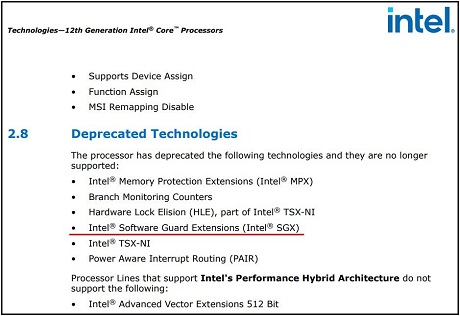 As seen in Intel's current datasheets for the 11th and 12th generation of its Core desktop processors, the SGX is listed as a deprecated technology, so it's no longer available.