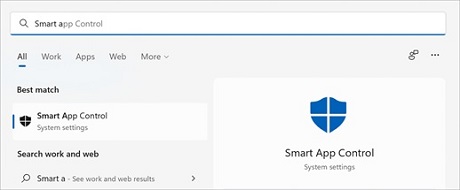• Search for Smart App Control.