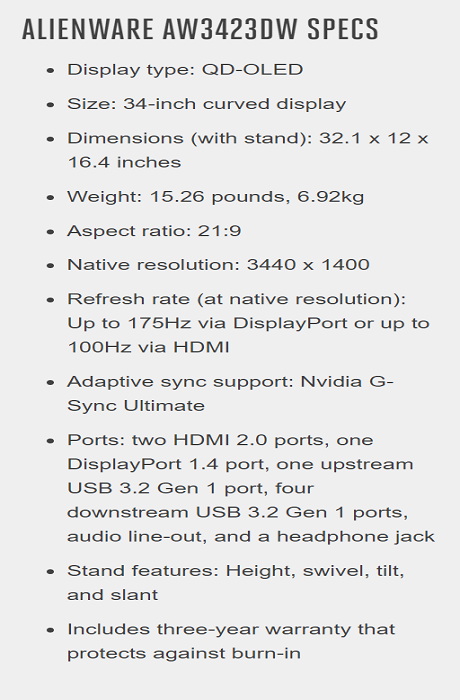 Neo G9 review, we noticed off-colored shadows in games as well as instances where the monitor displays horizontal lines when the colors darken. That may not happen with every unit, but it’s not an issue that you’ll have with the AW3423DW.