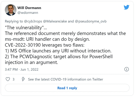 Based on Microsoft's guidance for CVE-2022-30190, the company appears to be tackling the flaws in the protocol handlers and their underlying Windows features, rather than the fact that threat actors can abuse Microsoft Office to launch these URIs without user interaction.
